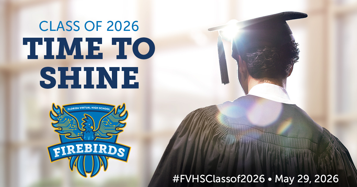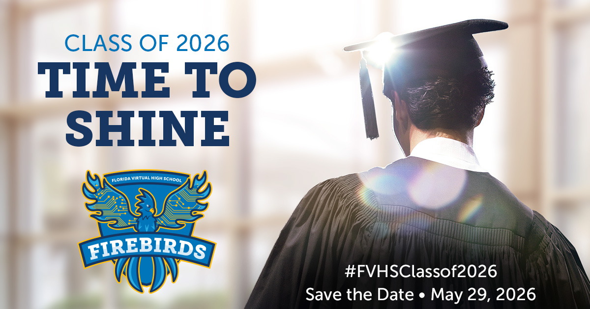 Florida Virtual High School is proud to honor the Class of 2026 as they achieve this significant milestone. Commencement will take place on Friday, May 29, 2026 at 1 p.m. EST at UCF Addition Financial Arena, and will be live-streamed right here so families and friends can join in from anywhere. We look forward to celebrating the hard work, dedication, and accomplishments of our graduates as they step into their next chapter with confidence and pride.